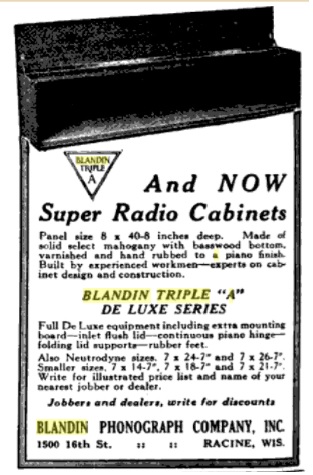 This ad in "Popular Radio" from 1924 suggests that Blandin manufactured the cabinet.