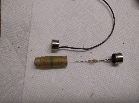 Since the Grid Leak resistor measured open in my radio I removed and disassembled it then replaced the internals with modern parts. These pictures show some of the steps