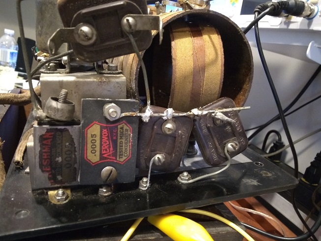 ![]() The picture on the left shows the capacitors as received. The picture on the right shows the rebuilt capacitors. These